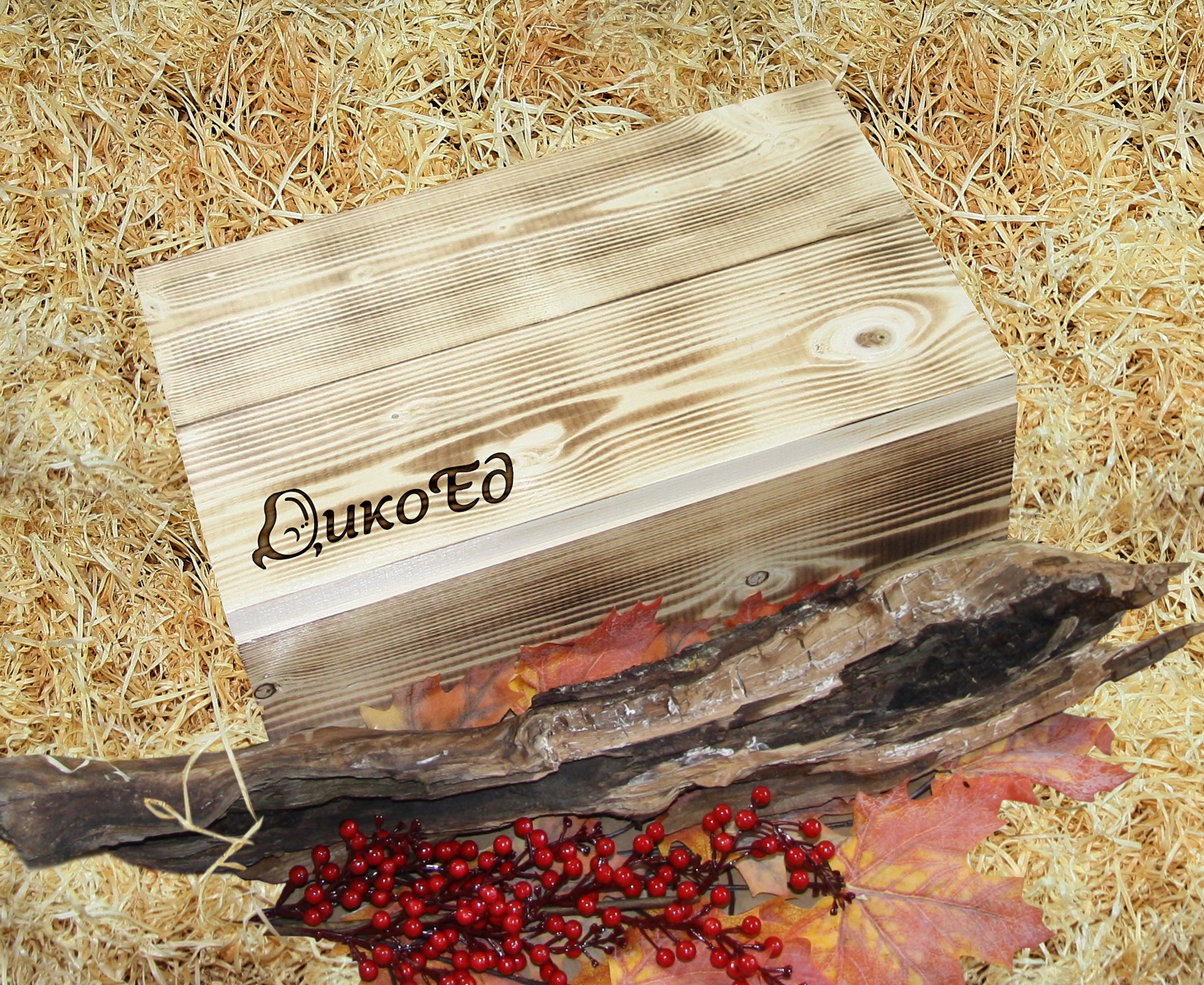 Подарочная упаковка для вашего заказа. Брутальный хэндмейд ящик из строганных сосновых досок размером 450х300х240мм (размеры в действительности могут не значительно отличаться) с выжженной символикой Дикоеда. Толщина доски 20мм и это делает ящик массивным, жестким, прочным, настоящим. Это не хилая пластиковая упаковка, или китайская коробочка из прессованной бумаги, которая развалится сразу же.
